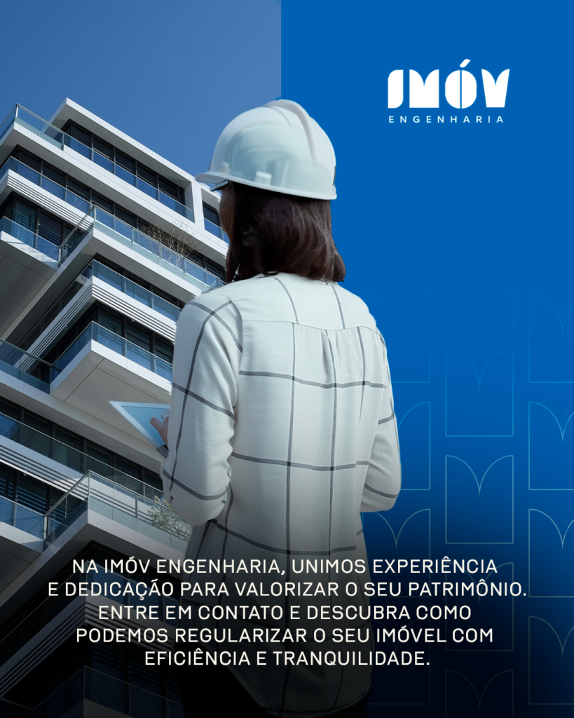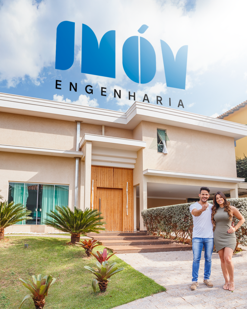 A tipografia da Imóv foi desenhada exclusivamente para a marca. As letras com formas geométricas arredondadas criam um visual contemporâneo, diferente do que se vê normalmente no setor de engenharia.