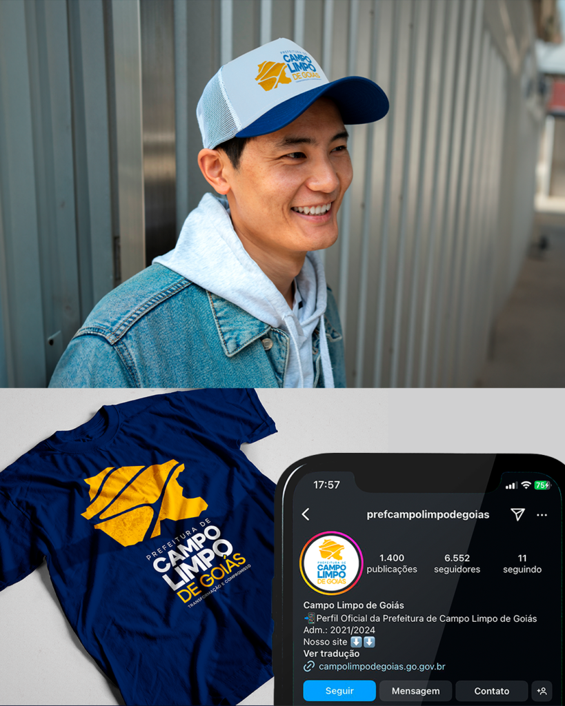 Campo Limpo de Goiás é um município de Goiás com história e gestão ativa. A prefeitura precisava de uma marca nova, que funcionasse bem nos diferentes pontos de comunicação da cidade.