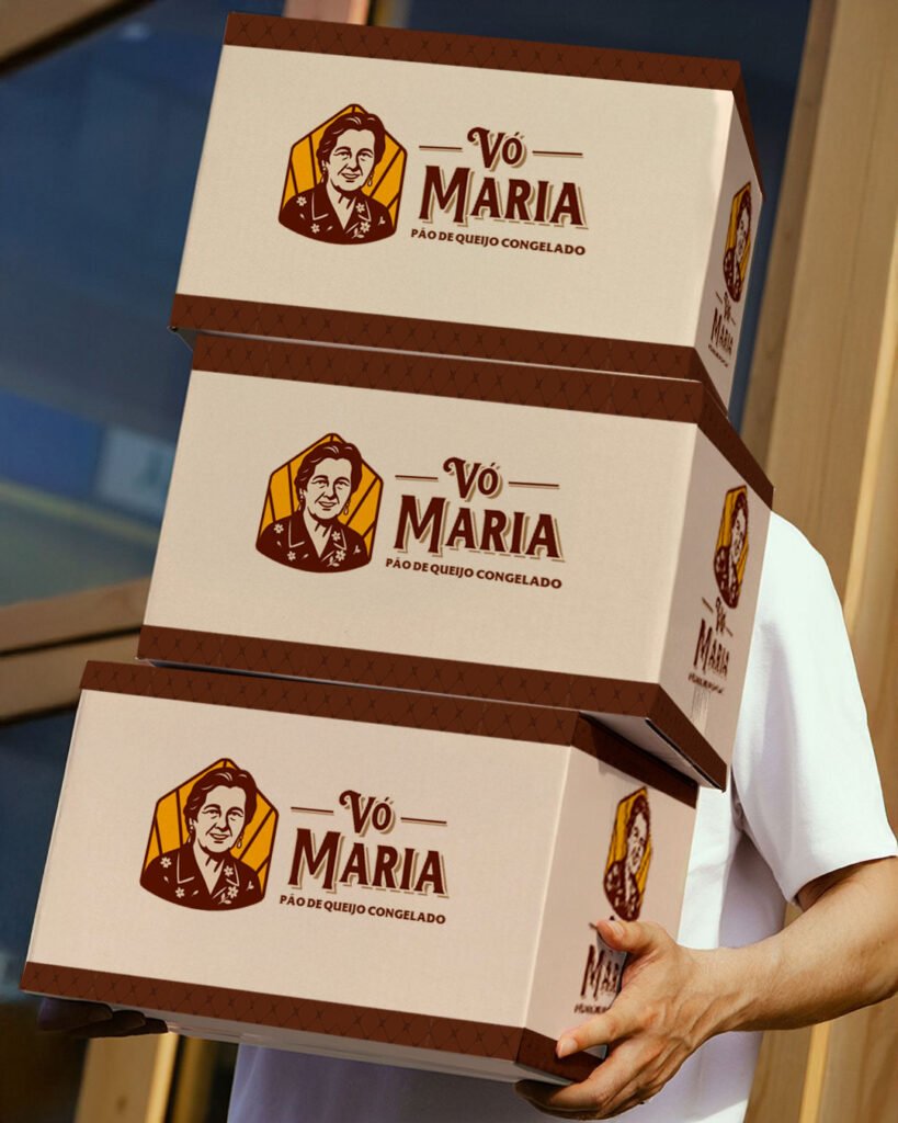 A identidade se estende por cada ponto de contato da marca, da embalagem que para o olho na prateleira às caixas que saem da fábrica com a Vó Maria estampada com orgulho. Um redesign que deu à marca a presença e a consistência que ela precisava para crescer na região.